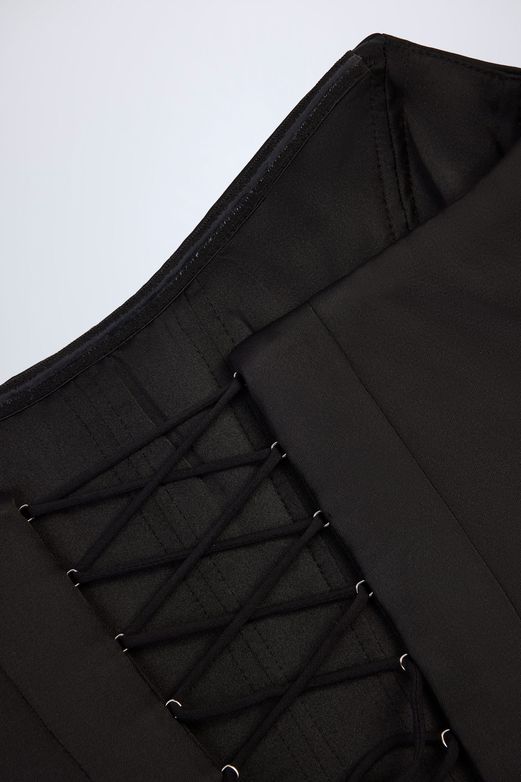 All eyes on you. Vampy and glamorous, the Xandi corset top is modelled on classic lingerie-inspired styles. Cut from lustrous satin, it features built-in boning for a supportive fit and a signature adjustable lace-up back for your perfect fit every time. The curved neckline and hem nod to our femme fatale inspiration for the season.