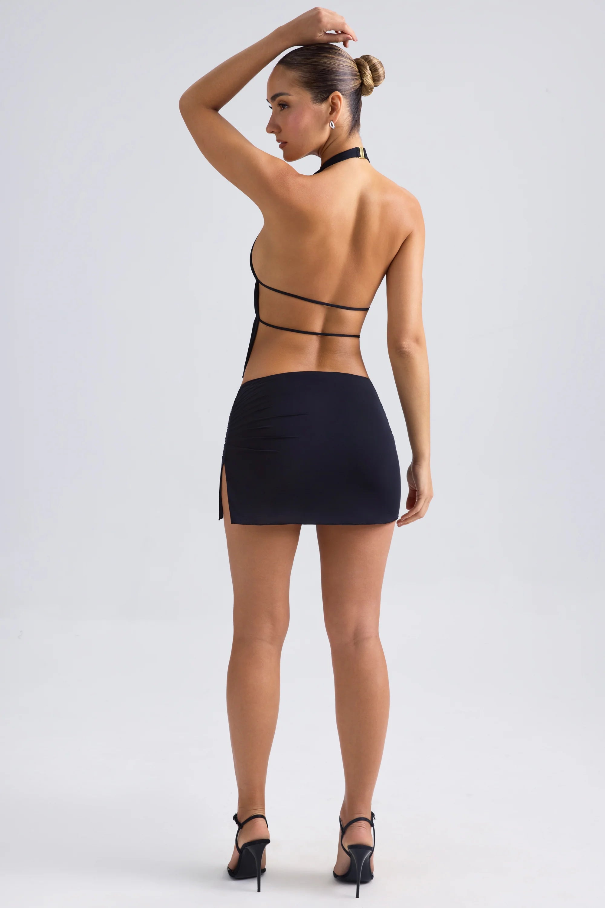Tactile textures and unique details. A statement twist on classic halterneck styles, the Larisa top is crafted from soft sheer jersey to an asymmetric silhouette with an open front, secured with minimal strap detailing and enhanced with ruched panels that fall to a waterfall hem. The open-back is finished with symmetrical adjustable straps for a custom fit.