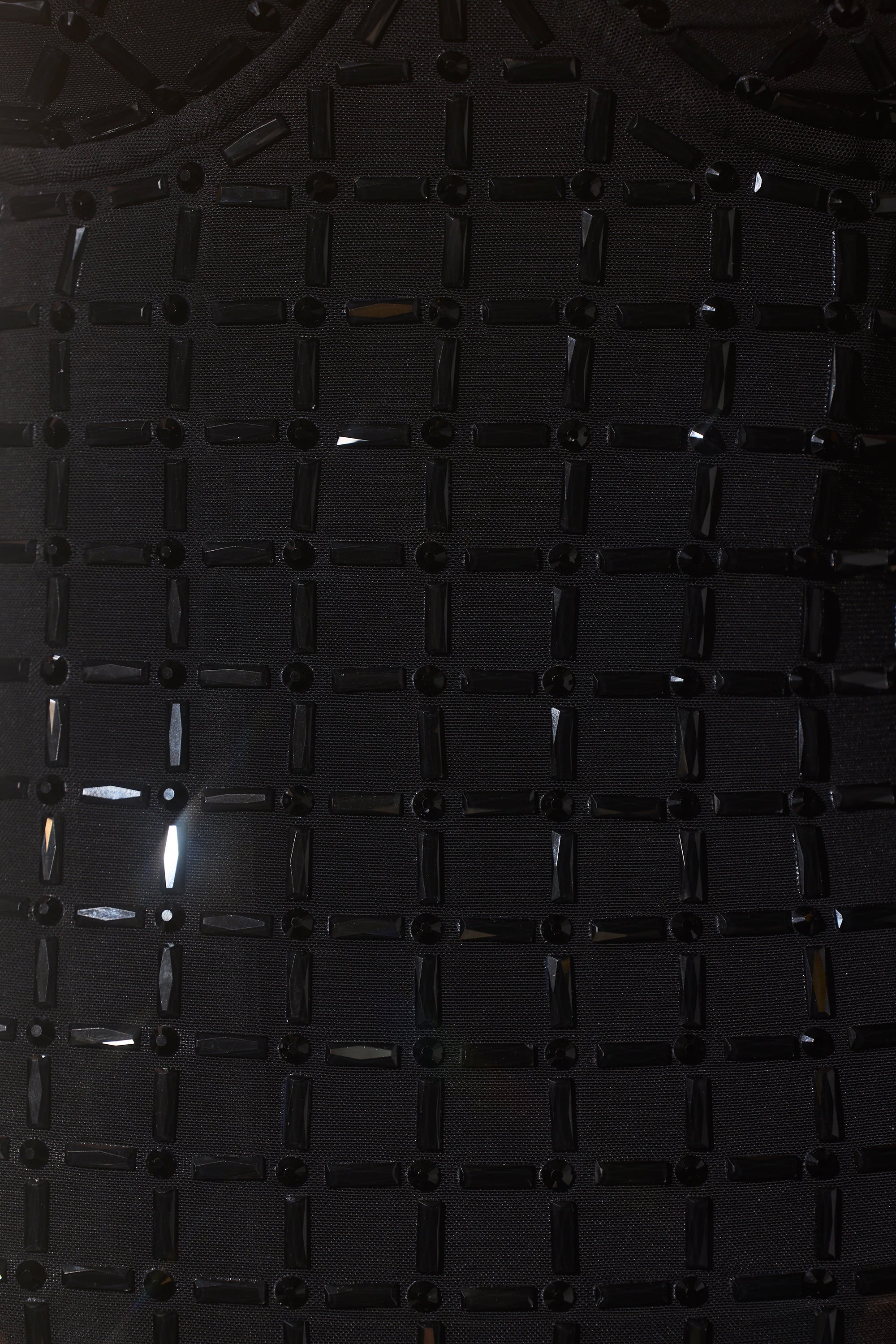 A new era of glam. Crafted from our premium, semi-sheer 40D stretch mesh that skims every curve, the Loretta mini dress is cut to an A-line silhouette and underlaid with a boned bodysuit with underwired cups for enhanced shaping, support and the perfect amount of coverage. It’s brought to life with custom-designed square HOTFIX embellishments arranged in a grid-like pattern for high-impact sparkle.