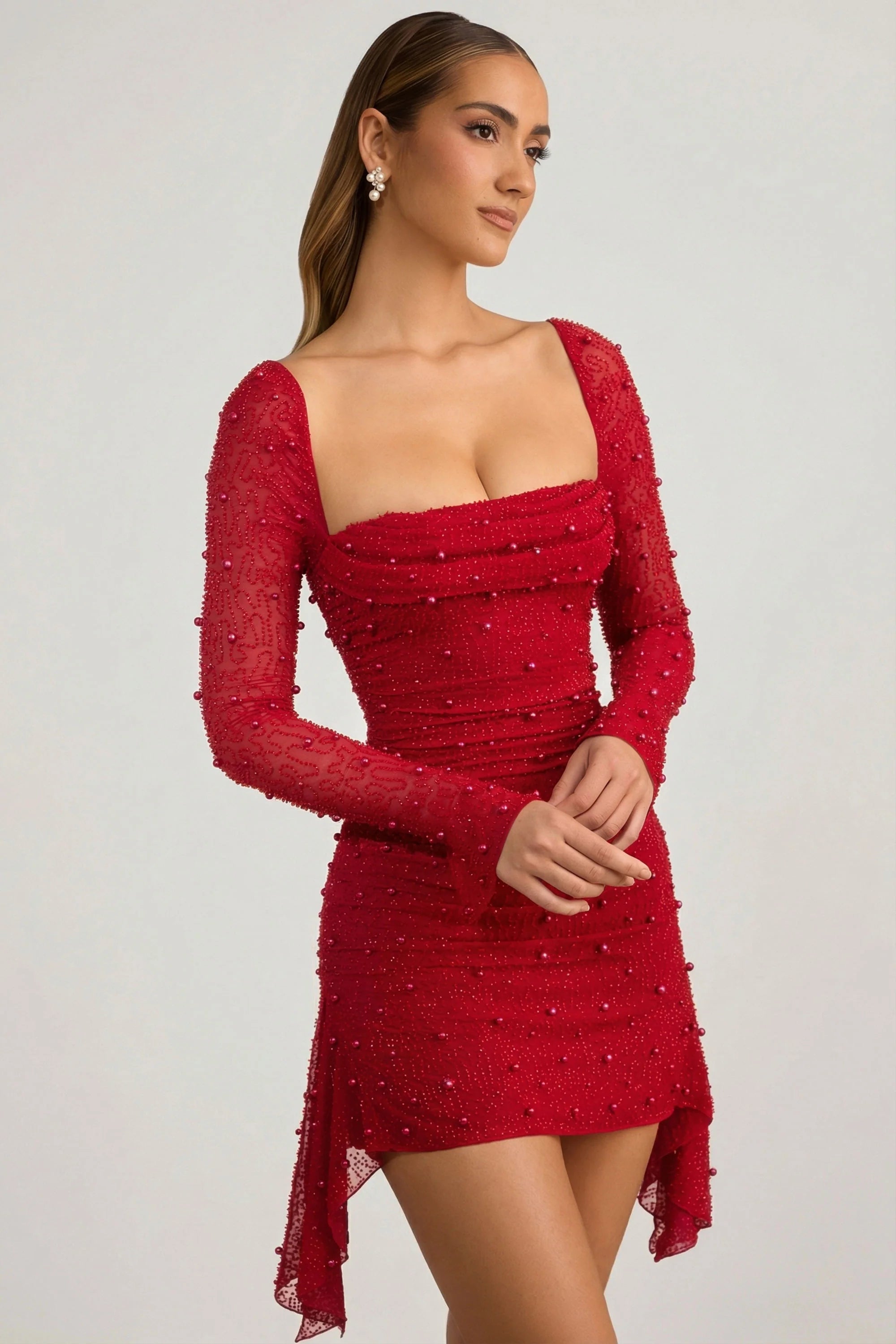 We’ve reinvented our signature embellished mini dress for the new season. Designed in our fully embellished, dual lined mesh fabric, the Tivoli mini dress features a bust flattering cowl neckline and waist cinching ruched bodice. Cut to a mini length with a thigh skimming a-line skirt, the Tivoli mini dress is accentuated with delicate waterfall draped detailing at the sides and features our signature, fully embellished single layer mesh sleeves. Pretty, delicate and fully embellished, Tivoli is the perfect birthday dress.