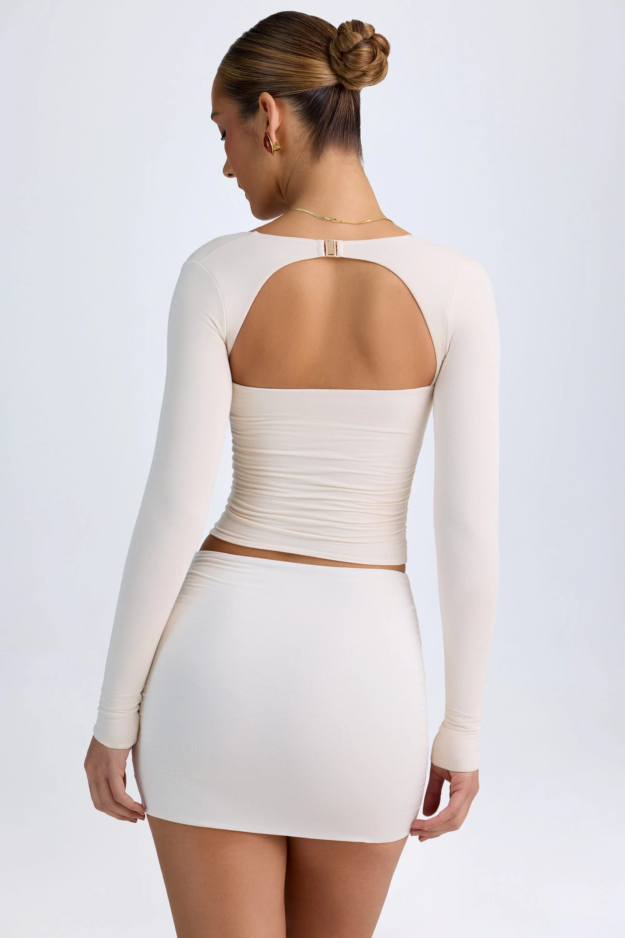 A style you’ll rely on every season, the Layna halterneck top is crafted from buttery soft, stretchy and breathable jersey made with TENCEL™ Modal fibres derived from controlled or certified wood sources. It’s cut to a bust-flattering halterneck silhouette framed with long fitted sleeves and curved cut-out detailing at the back.