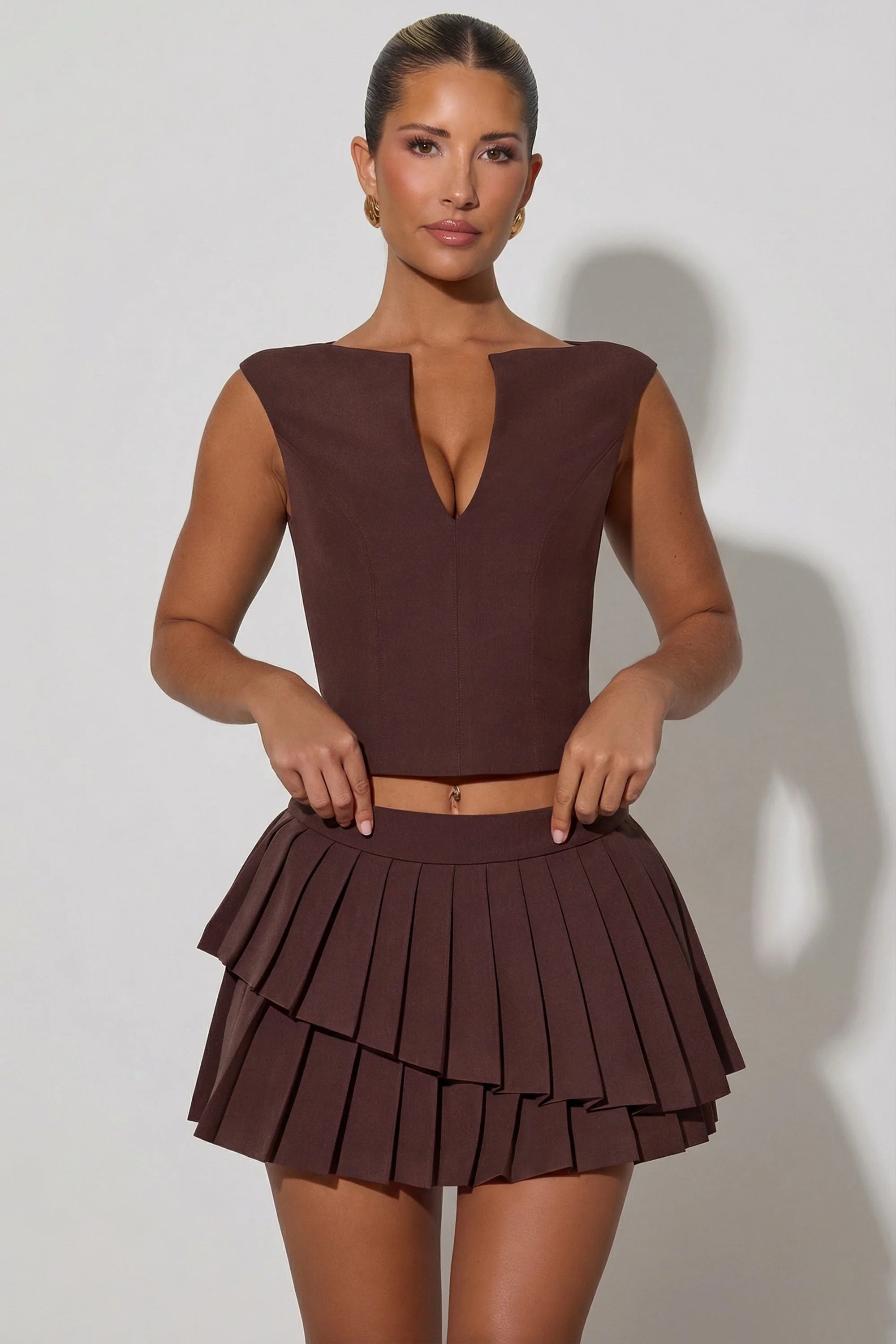 Classic staples. Designed to be worn with the coordinating skirt or your favourite trousers, the Kadie crop top is cut from premium stretch-woven fabric to a figure-defining silhouette. It’s framed with a notched V-neckline and features a sharp boat neck.